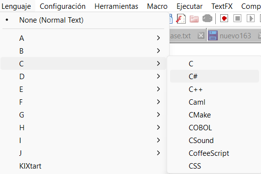 - Buscar el lenguaje de programación al que pertenece en Notepad++. Lenguaje -> C -> C#.