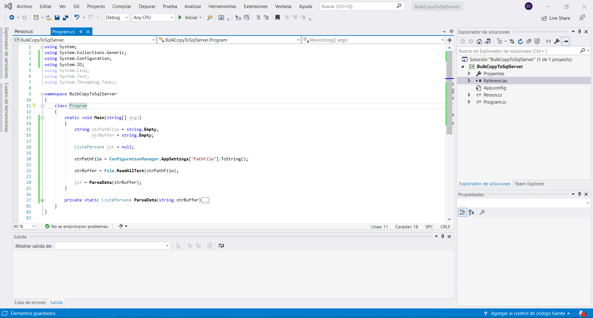 Bien, para poder trabajar con la clase SqlBulkCopy se tienen que realizar estos pasos: