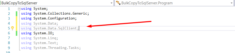Agregaremos la referencia using System.Data.SqlClient; a nuestro programa.