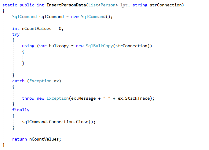 nCountRows = InsertPersonData(lst, strConnection);