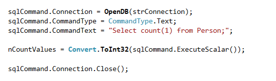 sqlCommand.CommandText = "Select count(1) from Person;";