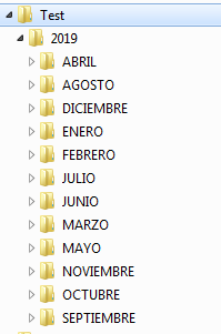 Mediante este programa se crea para todo un año una serie de carpetas que se clasifican por meses y despues por día, el codigo fuente se puede descargar aqui.