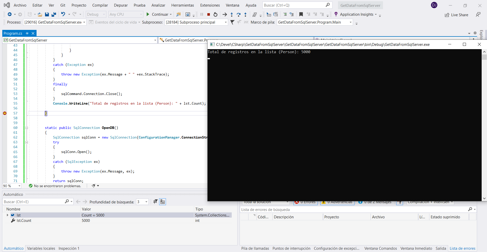 Leer datos de una tabla alojada en SqlServer 2019 a un programa de consola C#
