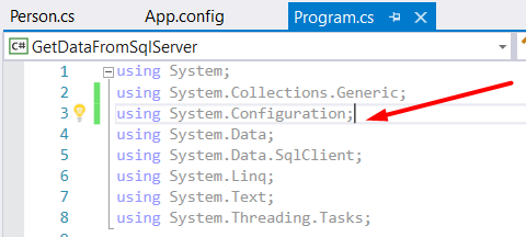 Bien, ya teniendo lo basico para poder conectarnos a la base de datos procedemos a declarar una lista de tipo Person, donde alojaremos nuestros datos una vez que hayamos hecho la consulta a la base de datos, despues declaramos un objeto tipo SqlCommand que nos servira para realizar la consulta a la base de datos, lo anterior lo agregamos en metodo Main con el siguiente codigo: