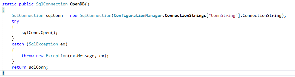 SqlConnection sqlConn = new SqlConnection(ConfigurationManager.ConnectionStrings["ConnString"].ConnectionString);