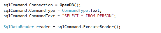 sqlCommand.CommandText = "SELECT * FROM PERSON";