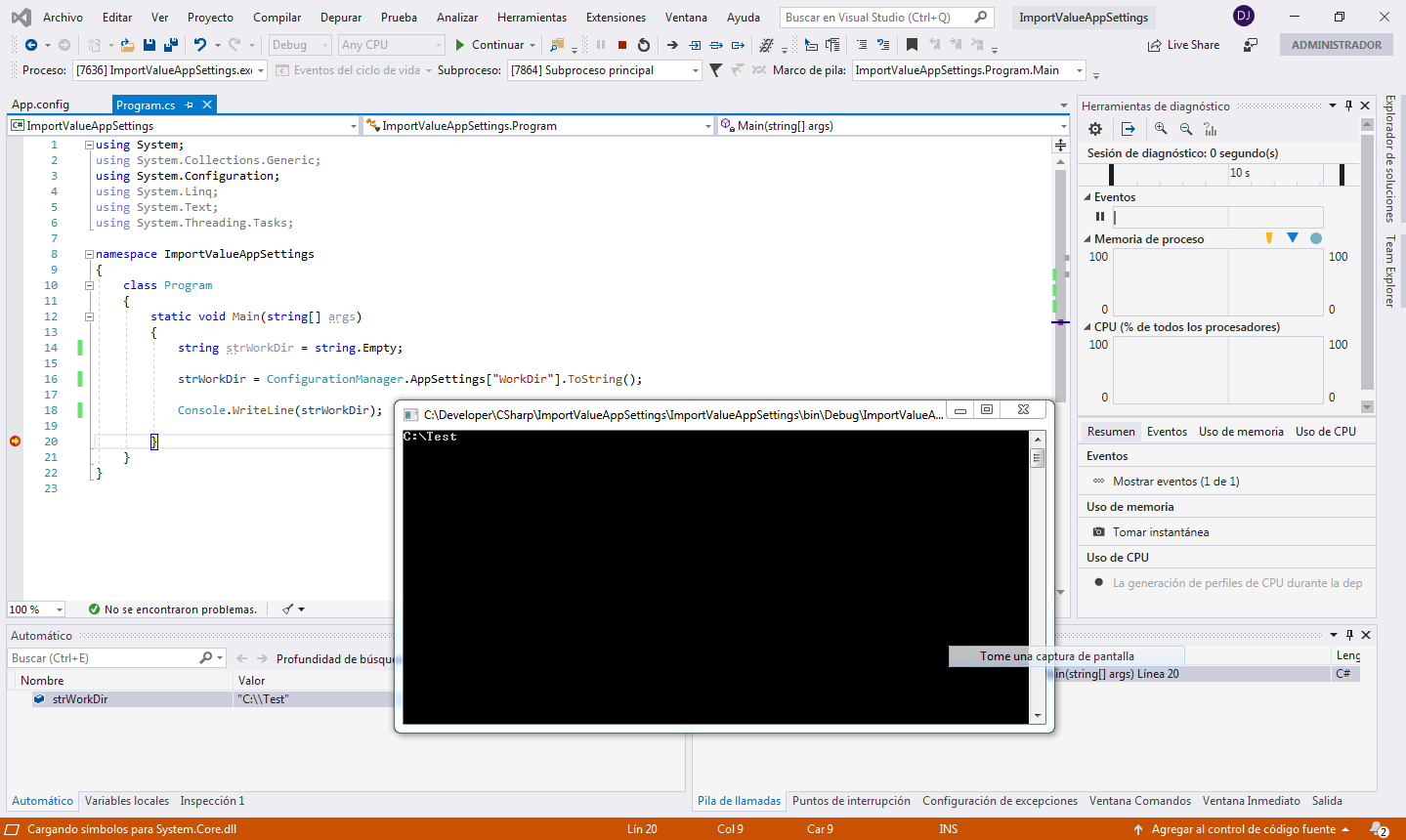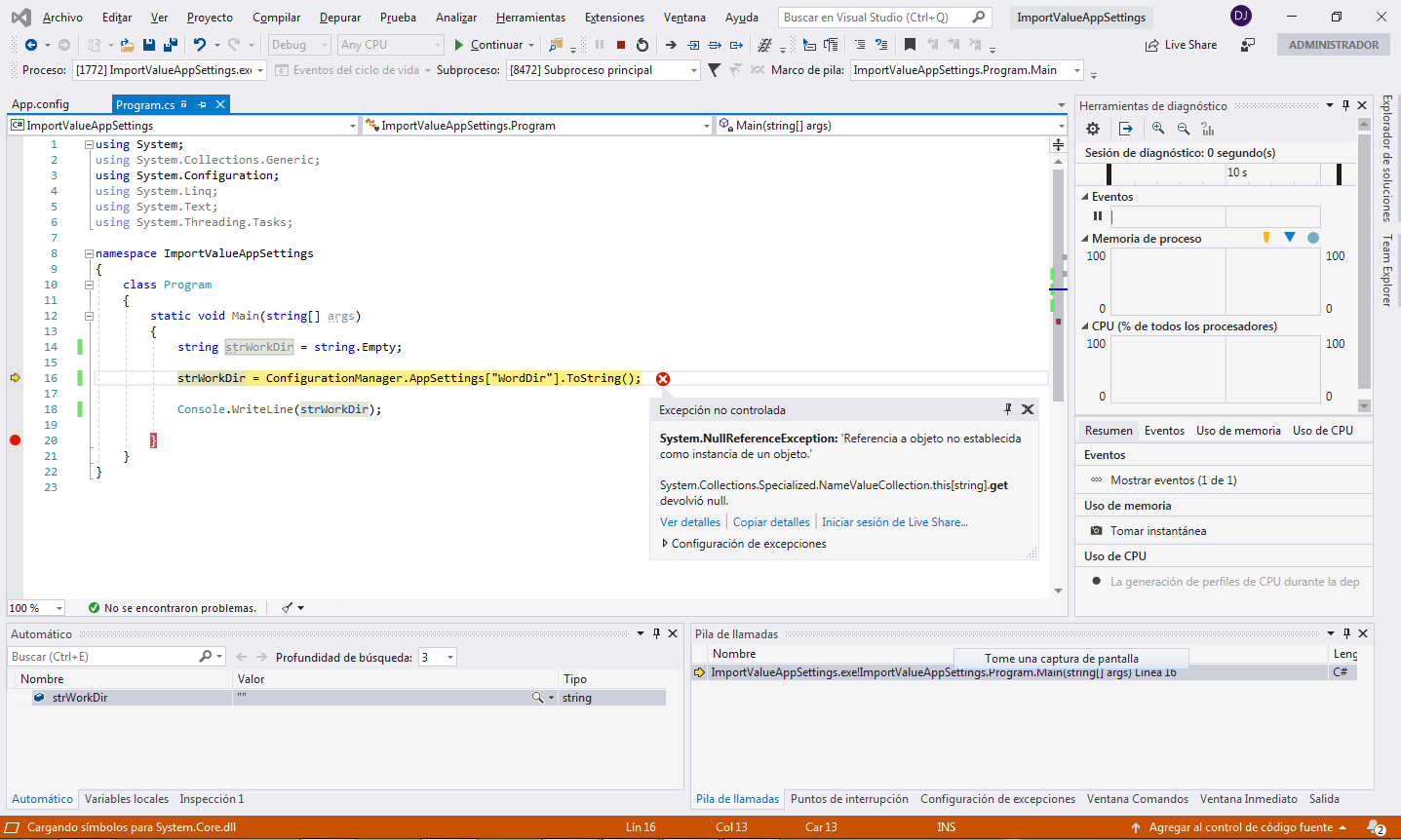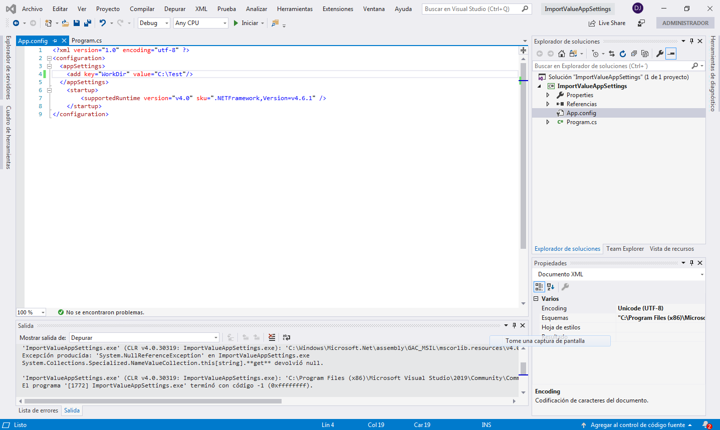 Verificamos que las llaves que estemos utilizando los nombres correspondan con los que tenemos en nuestro programa, en este ejemplo la palabra WorkDir esta mal escrita ya que dice WordDir. Corregimos la letra por la k y probamos para ver el resultado.