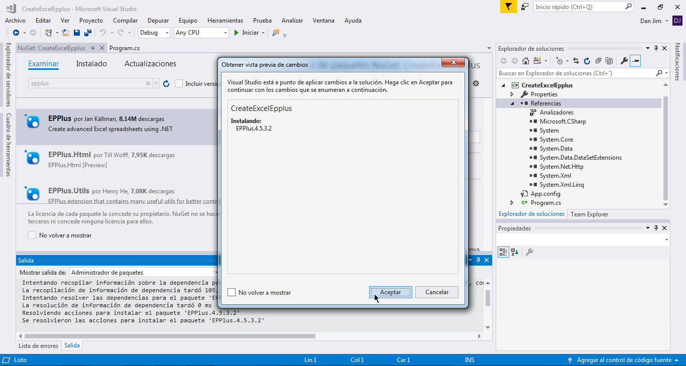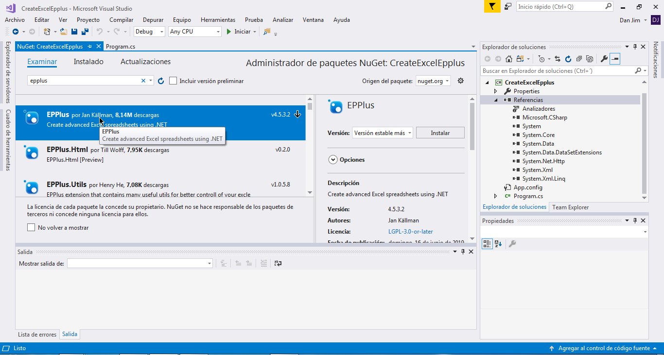 Crear un Archivo Excel con Epplus - Parte 1 - Creación y Configuración del Proyecto