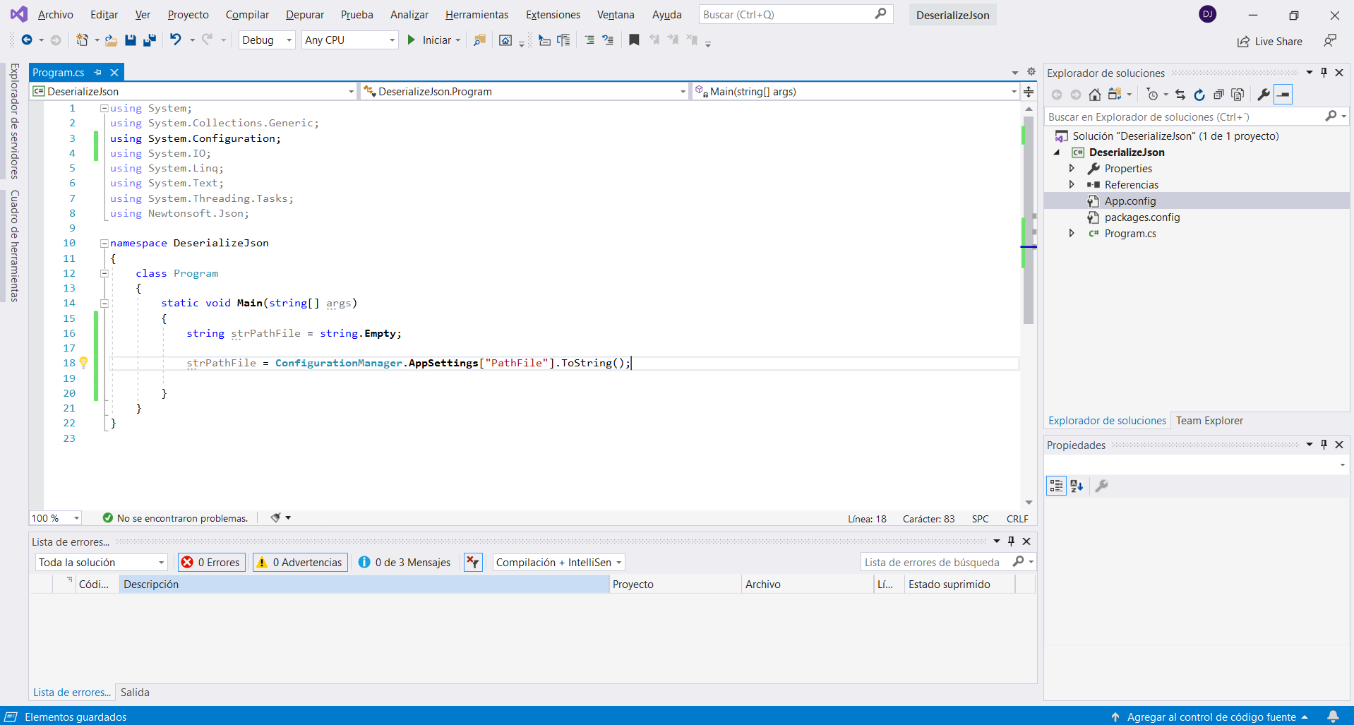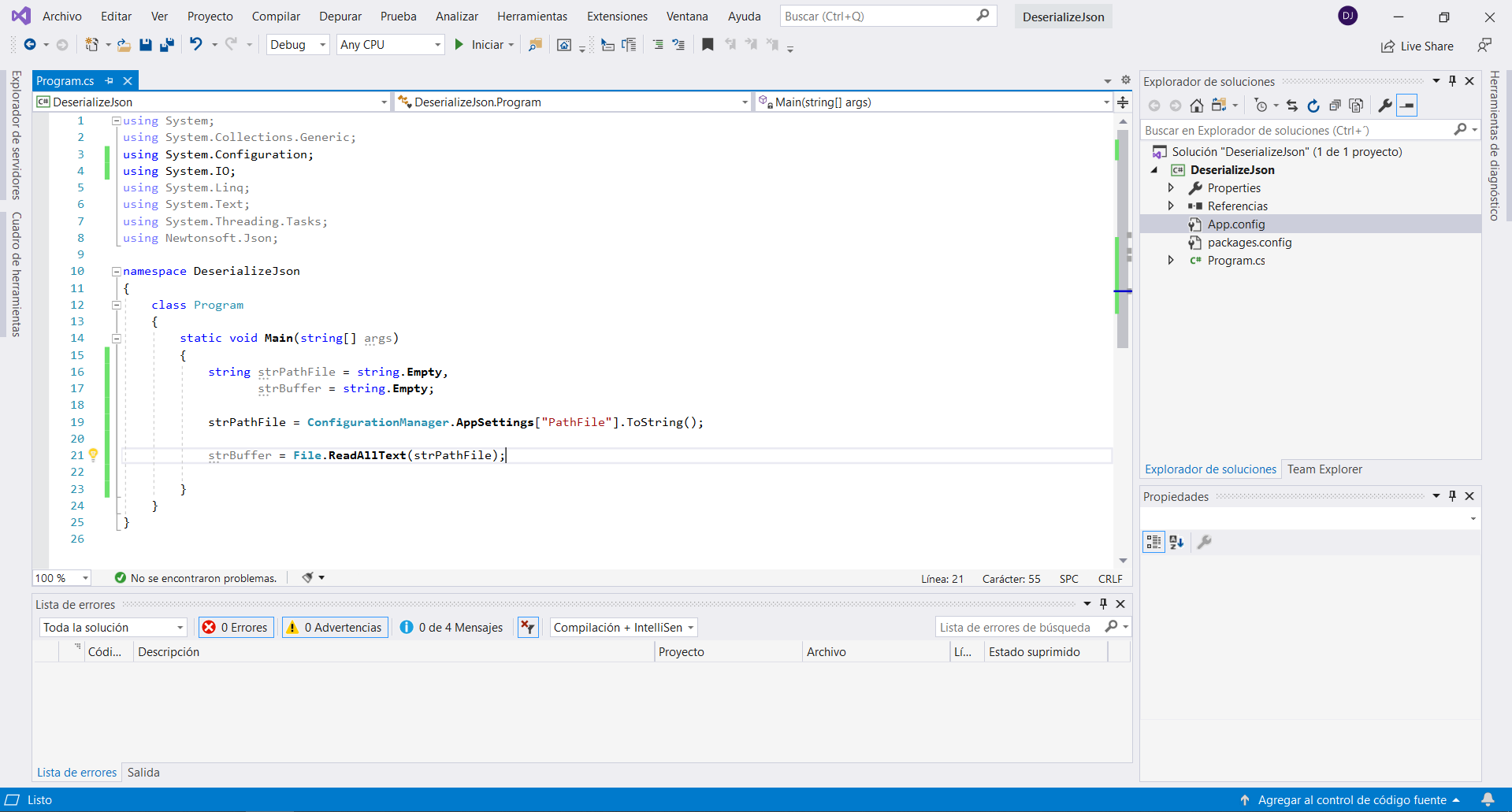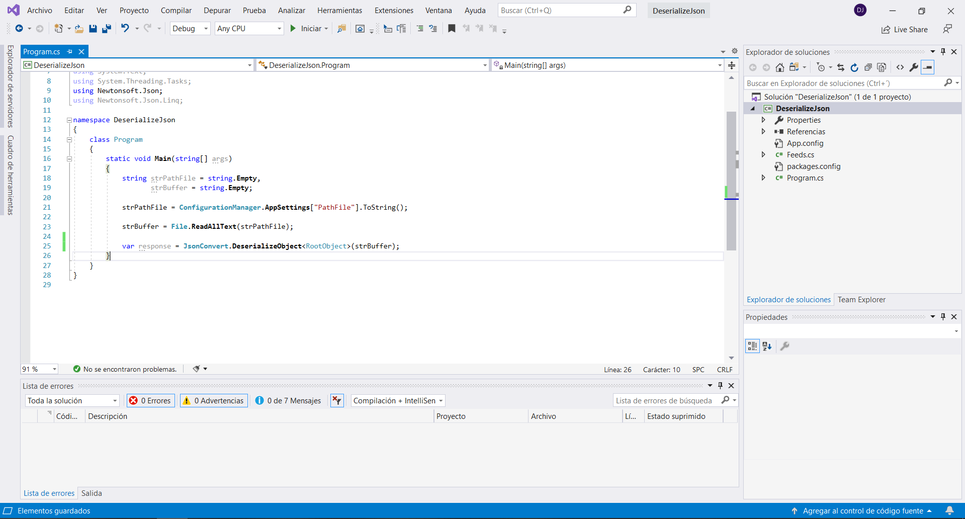 En este ejercicio deserializaremos un archivo Json y lo convertiremos en una lista de objetos con la libreria Json.Net