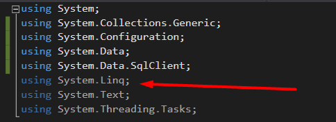 Lo primero que haremos sera verificar que en nuestras librerias este la de Linq agregada a nuestra clase, con la