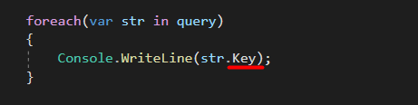 Para poder acceder a la agrupación tenemos que recorrer los datos con la instrucción foreach y para imprimir en pantalla la agrupación accedemos a esta con la palabra Key, como se muestra en la imagen: