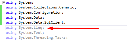 Lo primero que haremos sera verificar que en nuestras librerias este la de Linq agregada a nuestra clase, con la