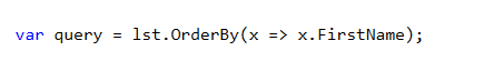 var query = lst.OrderBy(x => x.FirstName);