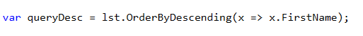 var query = lst.OrderByDescending(x => x.FirstName);