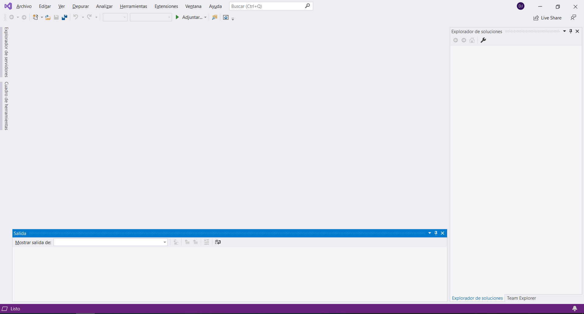 Daremos clic en Crear y esperaremos que Visual Studio cree el proyecto. Al finalizar quedara algo parecido a esto:
