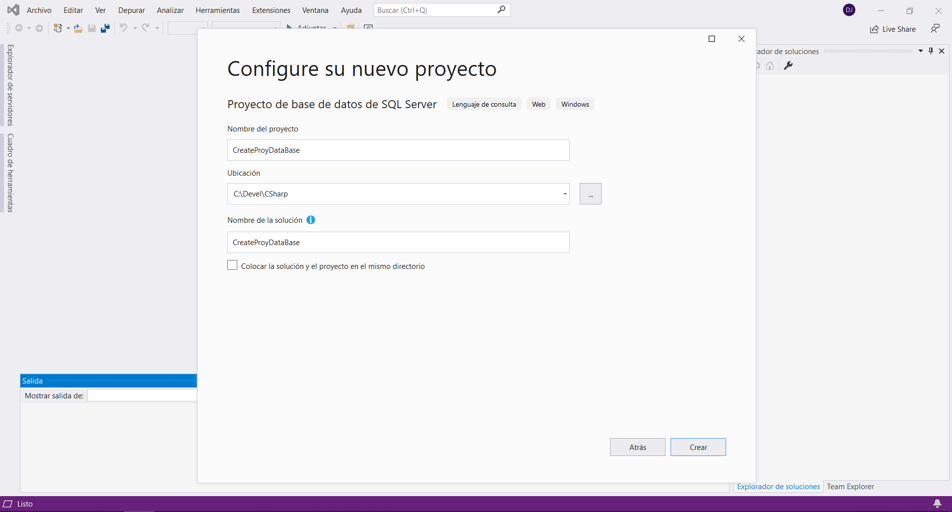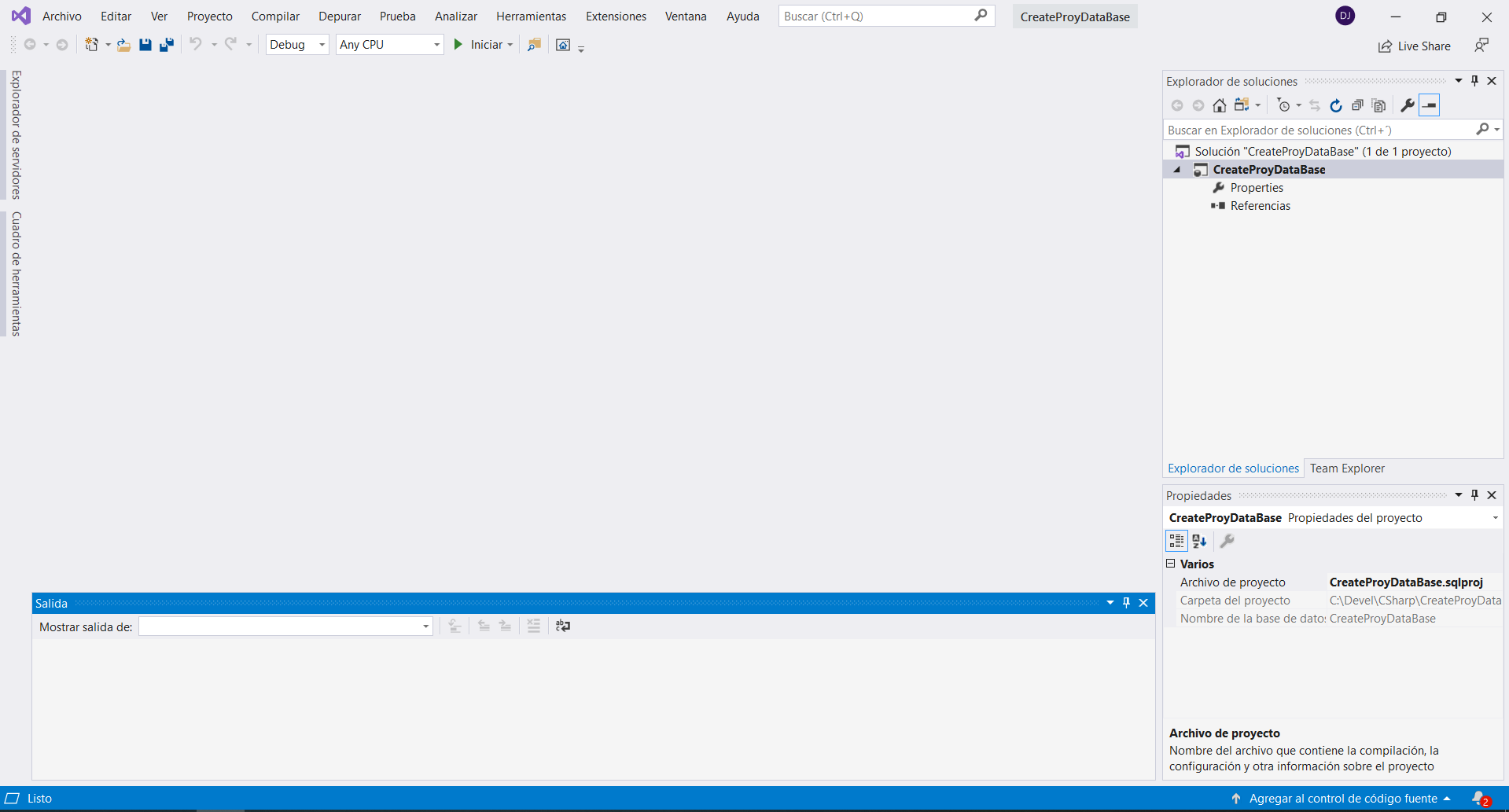 En este ejercicio crearemos un proyecto de base de datos en Visual Studio.Resultado