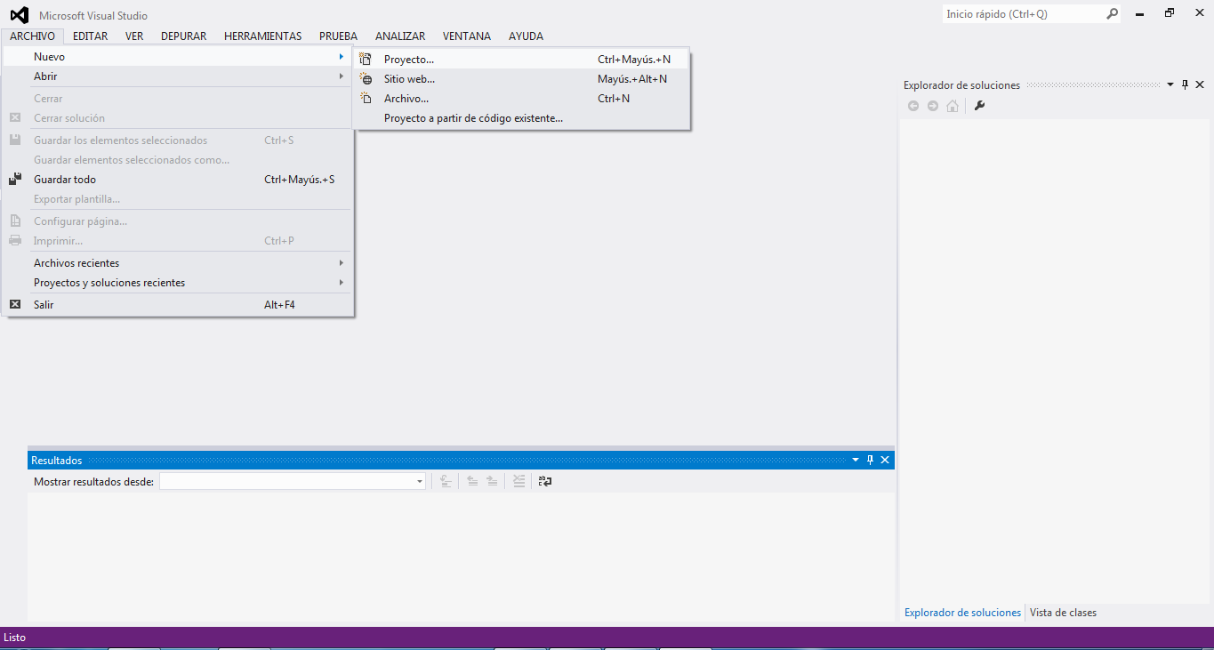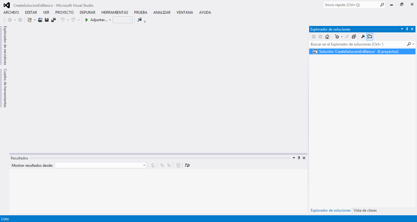 Ya tenemos nuestra solución en blanco creada para seguir agregando nuevos proyectos segun nuestras necesidades.
