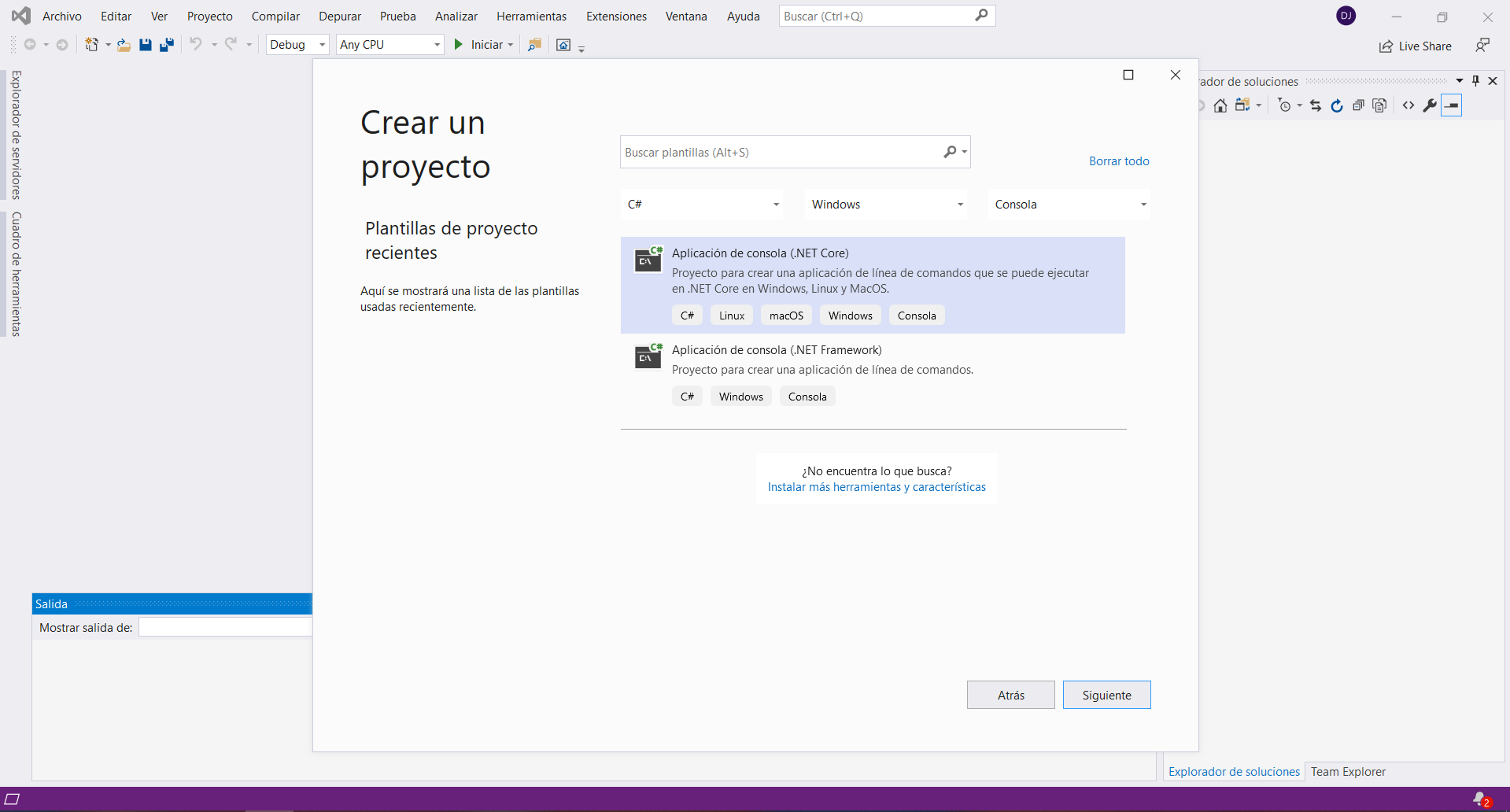 Crear solución con proyecto de consola .Netcore en Visual Studio 2019