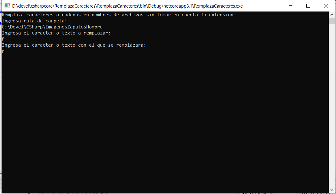 Aplicación de consola para remplazar caracteres de nombres de archivos en una carpeta especifica