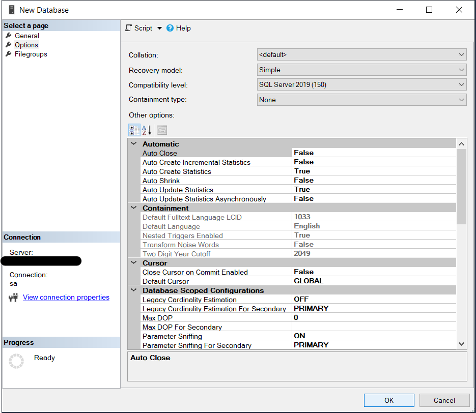 Creación de una Base de Datos 2019 con SQL Server Management Studio