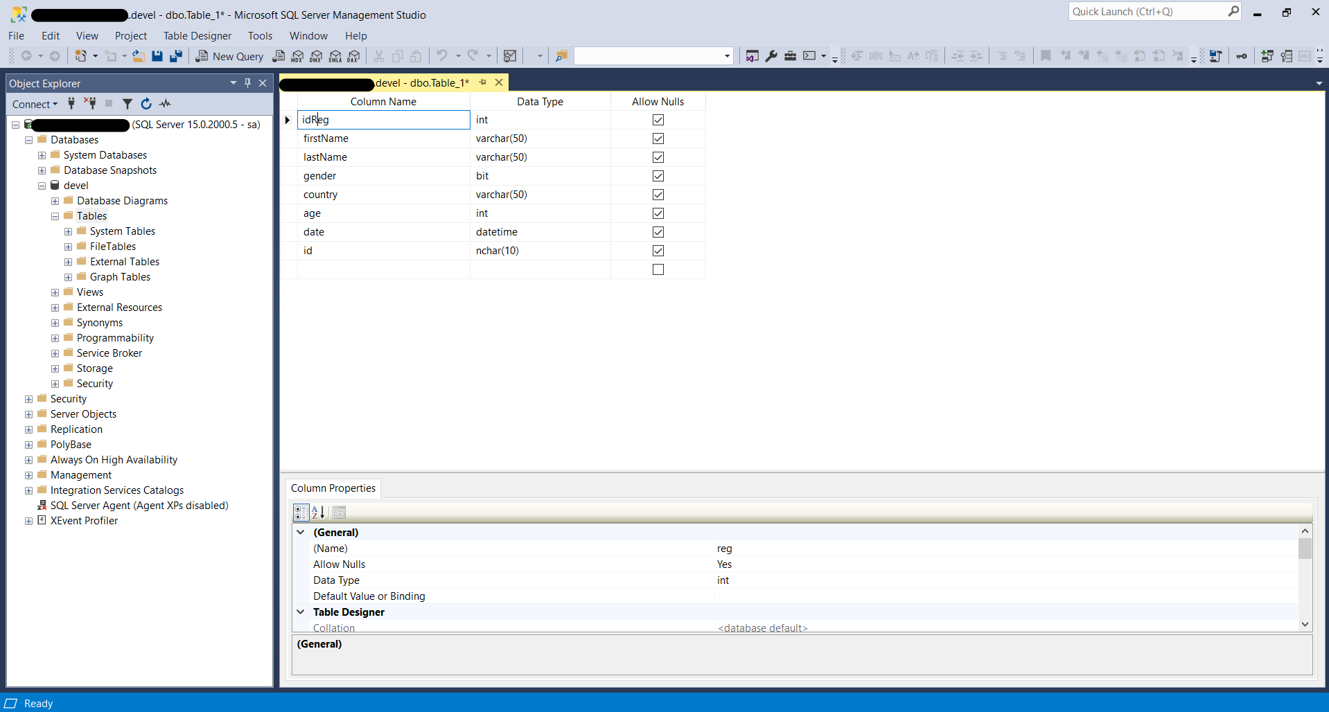 Creación de tabla en una Base de Datos 2019 con SQL Server Management Studio