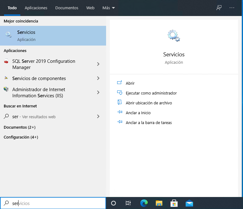 Terminado este proceso presionamos la tecla Windows escribimos Servicios y damos clic.
